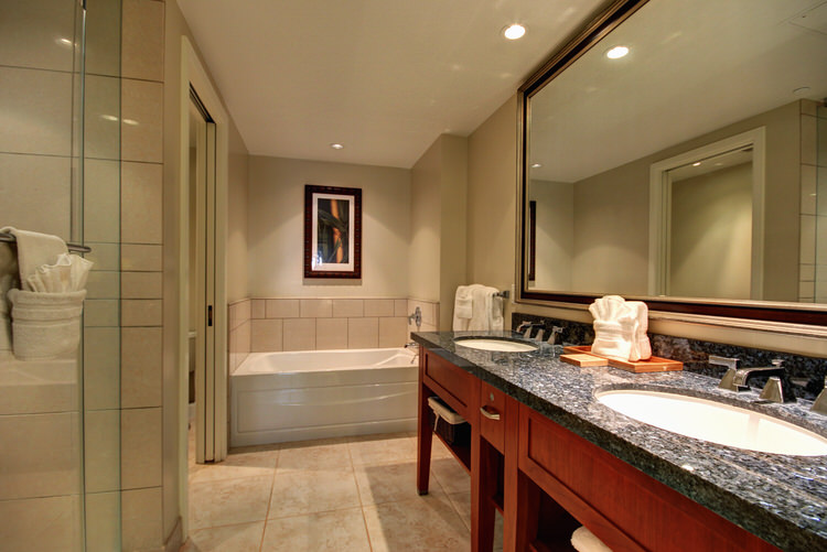 Located in the interior courtyard of the Konea tower at Honua Kai Resort is my premium 2 bedroom unit – Konea 103. It is a GROUND floor, two (2) bedroom, two (2) bathroom luxury condo. This 2 bedroom unit features 3 King beds (2 in the guest room) and a Queen plus full 80″ length size sleeper sofa. This unit is also one of only a handful of ground floor units at Honua Kai with a partial view of the ocean (view better than shown in the pictures) and is located very close to the pools and beach.. just walk out of the lanai to enjoy! (please see our room layout photo for the location of our condo).