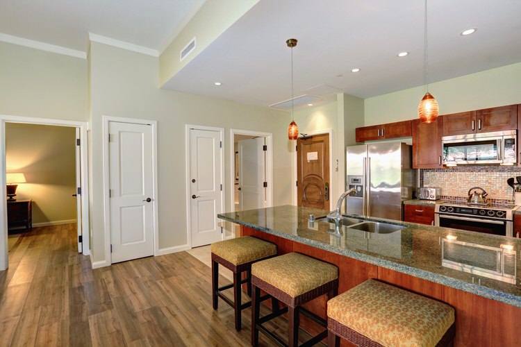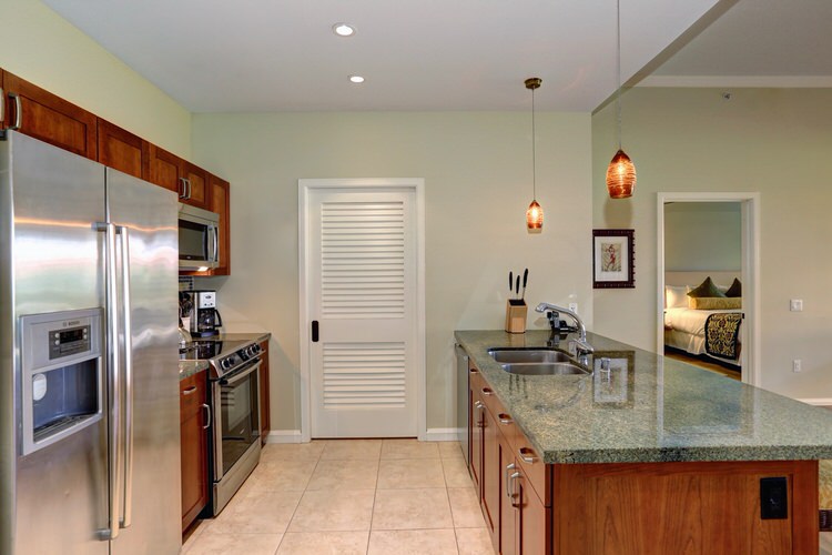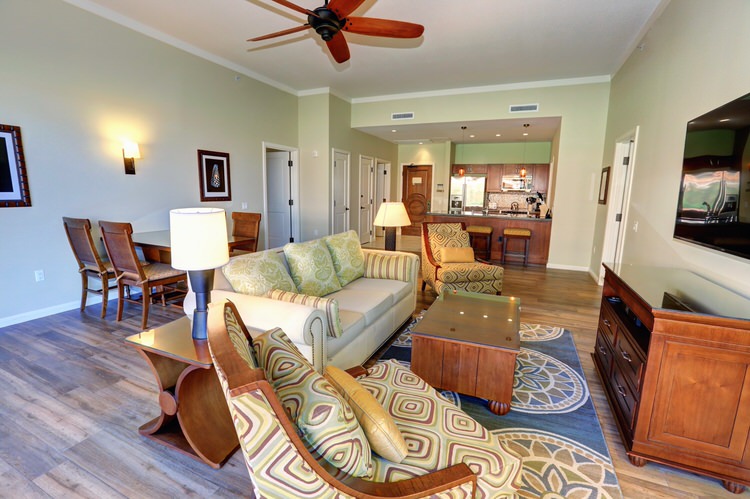 This unit features a queen plus size comfort sleeper living room sofa bed. This luxurious sleeper sofa has solid platforms that provide even support with no bars, no springs, and no sagging and features a full 80″ length of sleeping surface. Our sleeper sofa is more comfortable, longer, and 6″ wider than the standard Honua Kai sofa bed. So now all our guests, regardless of where they sleep, can rest comfortably.